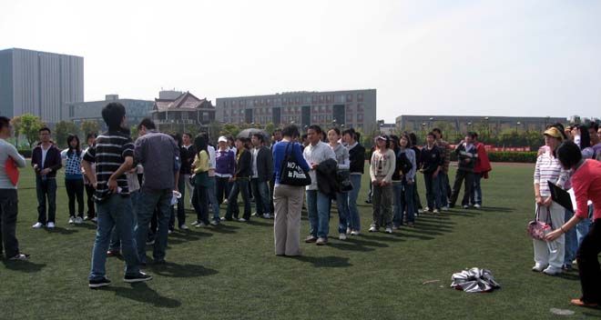 4月11日,公司研究生“电信之春”系列活动之一――大型户外素质拓展活动在嘉定校区足球场上隆重举行。作为嘉宾,DHL供应链大中华区人力资源副总裁徐亦立、利乐中国人力资源部、思易人力资源咨询公司的资深顾问,与yl23455永利、经管学院以及汽车学院近200位研究生参加了本次活动。
