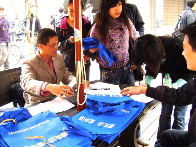 在深入开展学习实践科学发展观活动中,yl23455永利控制电子联合党总支博士生支部,于4月14日在嘉定校区步行街路口举办了“爱生活 爱环保”大型重视环保,节约资源为主题的宣传活动,受到了同学们的欢迎和认可。