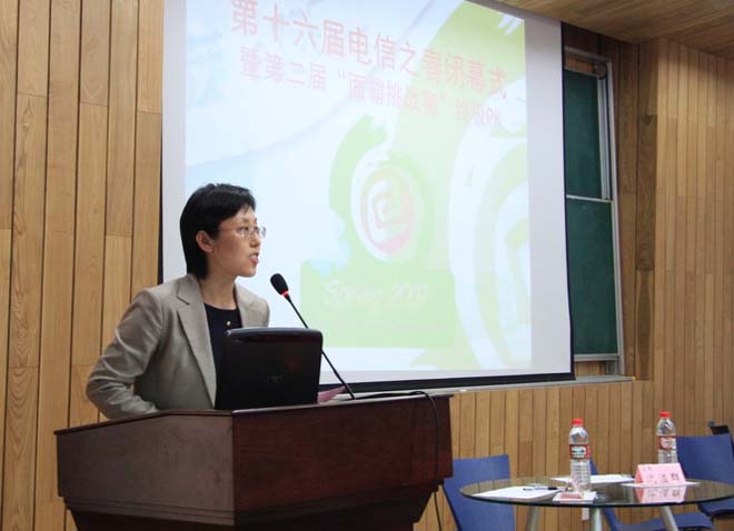 4月29日,学院第十六届电信之春闭幕式暨第二届“面霸”挑战赛在电信大楼117隆重举行,来自学院各个专业的研究生一百多人观看了比赛,公司党委副书记乔非观看了比赛并致闭幕辞。