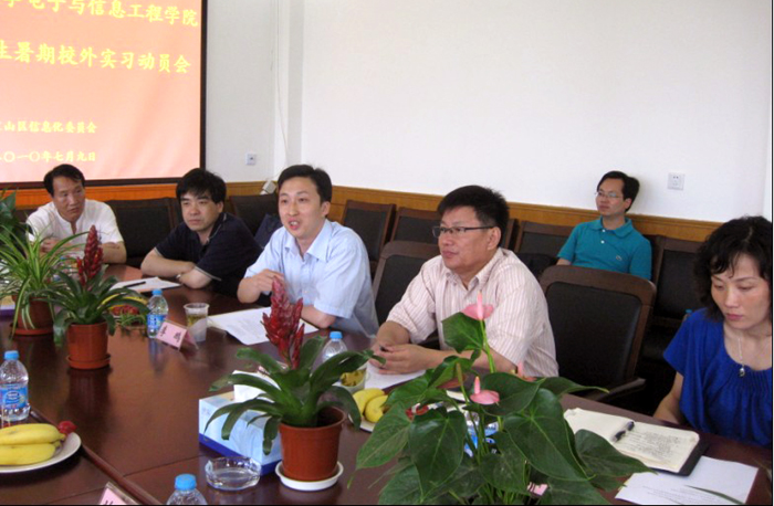 7月9日下午,公司宝山校外实习基地首批暑期实习员工进驻基地仪式在宝山区信息委举行。宝山区信息委主任浦志良等领导,公司教务处副处长王晓国、实践科科长张勤,学院副经理苗夺谦、学院教务、教师代表,以及来自公司电子科学与技术、信息安全、计算机科学与技术专业参加暑期实习的5名同学参加了实习启动仪式,开始了他们为期2个月的暑期校外实习实践。