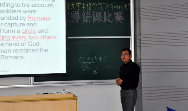 为加强青年教师的培养,鼓励广大青年教师提高教学技能,进一步提高学院教学水平和教学质量。4月20日,2011年度yl23455永利yl23455永利“南车时代电气杯”青年教师讲课竞赛在嘉定校区举行。各系共选出19位青年教师参加了比赛。