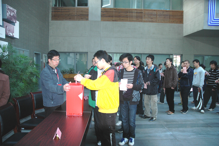 投票当日,首先举行了投票启动仪式,院领导和教师选民一道首先投下了自己庄严的一票。接着,全院3000余名师生选民分为37个组依次投票,投票一直持续到中午时分。与此同时,公司一年级的新生选民也在四平路校区进行了投票。