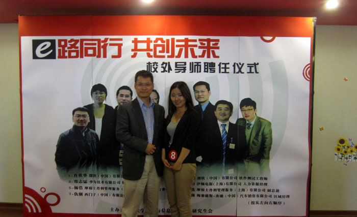 6月5日下午,第一批校外导师聘任仪式在嘉定校区同德楼隆重举行。公司党委副书记董变林代表学院,为第一批校外导师――摩根士丹利管理服务(上海)有限公司副总裁杨英杰先生、摩根士丹利管理服务(上海)有限公司执行董事杨浩先生、伊顿电源(上海)有限公司人力资源经理陈新力先生、西门子(中国)有限公司高级销售经理仇钢先生、华为技术有限公司招聘经理郑志猛先生、梅赛德斯―奔驰(中国)汽车销售有限公司区域经理涂宁南先生、微软(中国)有限公司测试主管肖世华先生、微软(中国)有限公司软件测试工程师周成燕女士等8位导师一一颁发了聘书。