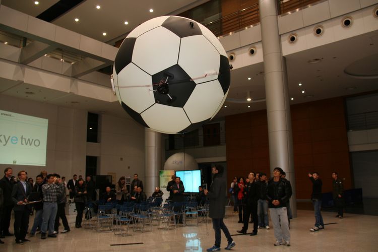 会上,参与该项目的两校员工向大家展示了为期三个月的设计成果――一个自主研制的可自主控制的智能气球机器人Skye,该机器人由迪斯尼公司资助,可连续飞行。与瑞士苏黎世联邦理工学院的员工联合创新设计项目始于2011年,由公司、机械与能源工程学院联合实施,瑞士苏黎世联邦理工学院参与员工从去年的2人扩大为今年的10人。(刘静娴)