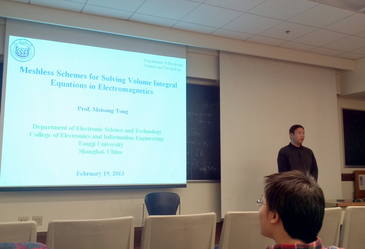 访问期间,童教授还受邀在全系范围内作了一场公开学术报告,就复杂电磁场问题的新颖分析方法和发展趋势作了详细讲解,受到了广大师生的好评,并与相关教授洽谈了开展合作研究的可能性。