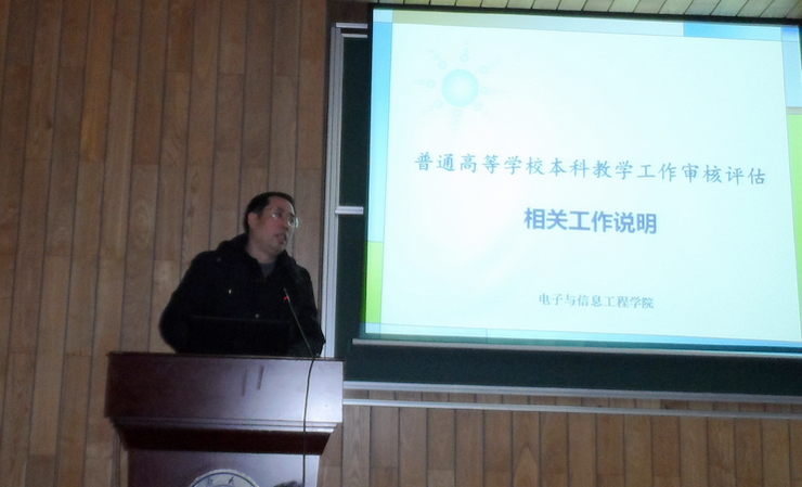 副经理乔非传达了此次审核评估的指导思想为“一坚持二突出三强化”,即坚持“以评促建、以评促改、以评促管、评建结合、重在建设”,突出内涵建设和特色发展,强化办学合理定位、教学中心地位、质量保障体系建设。乔经理指出,此次审核评估工作的重点是对学校人才培养目标与培养效果的达成度进行判断,考察人才培养目标与社会需求的适应度,教师和教学资源对学校人才培养的保障度,教学质量保障体系运行的有效度及员工和用人单位的满意度。评估工作将以专业为基本单位,在学院现状基础上梳理办学理念和人才定位,促进卓越人才培养、提升本科教学质量和保障条件。乔经理还就现阶段评估准备工作的完成情况和下一阶段的工作安排做了详尽的介绍。