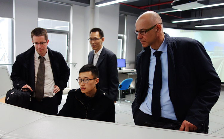 5月9日下午,法国瓦伦西纳大学工程师学院经理Daniel COUTELIER教授、理工学院外办主任Sébastien GRONDEL教授、国际合作部中国项目协调人徐卫疆教授一行来到嘉定校区,访问了包括公司在内的三个工科学院。公司经理助理尹学锋副教授在智信馆接待了代表团一行。
