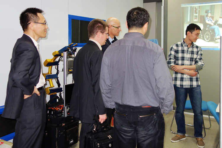 COUTELIER教授等参观了虚拟现实技术工程平台、嵌入式视频监控平台及脑认知与智能系统试验平台,并和平台研究人员进行了交流。随后,双方在305会议室进行了会谈,并表达了在已有框架协议的基础上,切实开展员工互换项目的意愿。