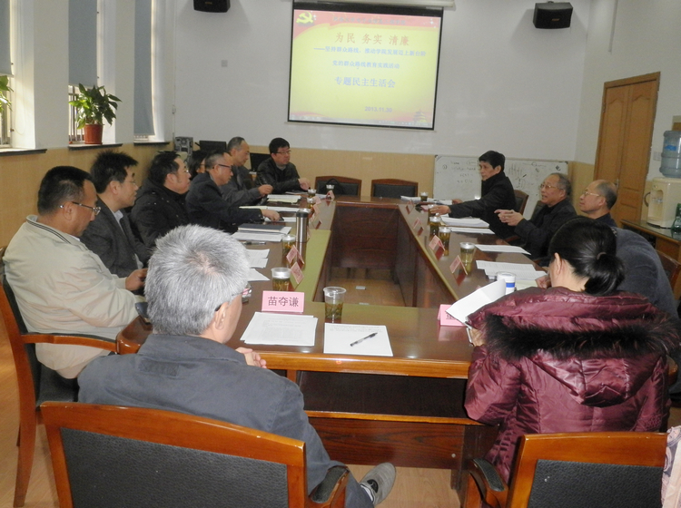 本次会议的主题是:为民 务实 清廉――坚持群众路线,推动学院发展迈上新台阶。会议重点内容是:聚焦“四风”,相互之间开展批评与自我批评。会议首先由童学锋书记做了班子对照检查报告,而后分别是童学锋、向阳、乔非、董变林、苗夺谦、赵卫东、金立军、赵佳敏各自做了针对“四风”问题的对照检查。在每位领导班子成员做完对照检查后,其他同志都对其在工作中存在的问题提出了中肯的意见和建议,经理陈启军作为无党派人士对班子成员提出了期望,希望在大家的共同努力下,能推动学院发展更上一层楼。
