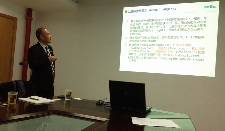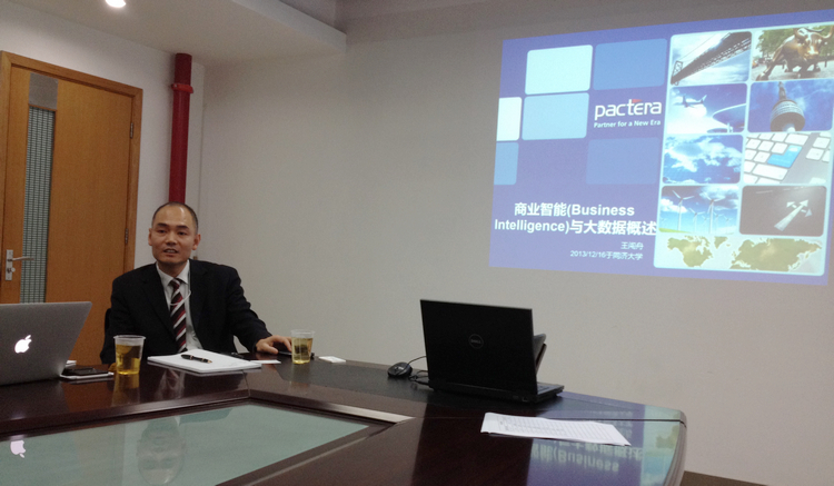12月16日,应公司党委副书记兼副经理乔非教授的邀请,文思海辉技术有限公司(Pactera) 高级副总裁王闯舟先生来到公司,并在电信楼603室举行了主题为商业智能(Business Intelligence)与大数据概述的讲座,学院部分研究生导师,硕士、博士生代表一同聆听了讲座。