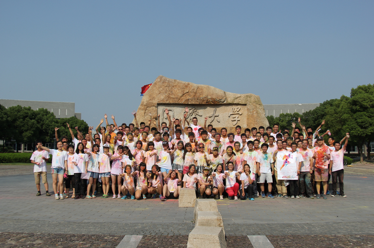 活动结束后,很多参与者都选择了合影留念,原本纯白的T恤衫被染成了七彩的颜色,正如我们多姿多彩的青春。