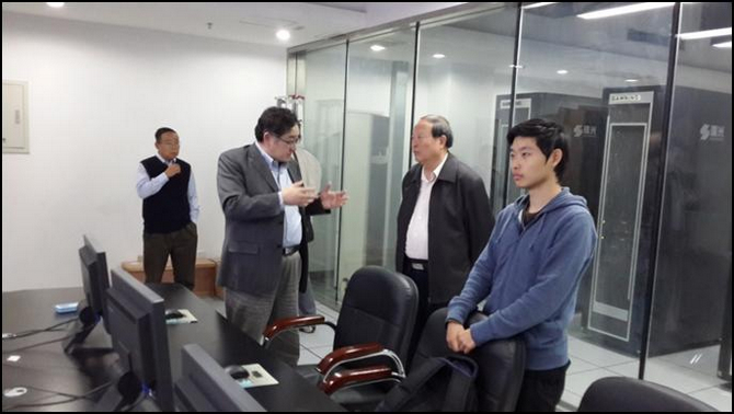 之后,卢锡城院士参观了实验室各个研究平台,包括可信监控电子交易平台、脑认知研究平台、嵌入式视频监控平台、无人车赛道监管平台、虚拟仿真平台和虚拟现实研究平台,并与实验室的师生进行交流。(黄蔓娇)