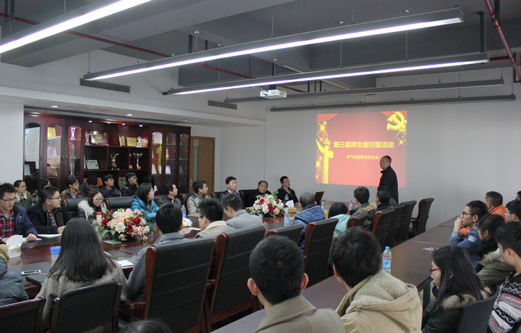 12月9日,电气信通联合党总支全体师生欢聚一堂,举办第三届“师生面对面”活动。电气工程系张逸成教授、姚勇涛副教授、信息与通信工程系胡宗福教授、黄新林副教授等8名研究生导师应邀参加活动。活动由学院副经理、电气信通联合党总支书记金立军教授主持。