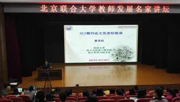 近日,受教育部高等学校教师网络培训中心邀请,公司电子科学与技术系主任童美松教授在北京联合大学举办的“教师发展名家讲坛”上作了一场关于如何发表高质量SCI论文的学术讲座。讲座中童美松教授详细阐述了什么是SCI论文、为什么要发表SCI论文以及如何发表高质量SCI论文等广大教师非常关心的问题,强调高质量SCI论文来自于高质量科研活动产生的高质量科研成果,并通过大量例子就如何开展高质量科研活动和撰写高水平SCI论文分享了自己的经验和体会。
